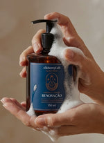 O Sabonete Líquido Renovação 350ml da AlkhemyLab de Joel Aleixo é um produto vegano, desenvolvido com óleos essenciais 100% puros de laranja, lavanda e madeira ho. Ele possui uma textura aveludada e um aroma delicado, proporcionando uma experiência sensorial única e revigorante. Biocompatível com todos os tipos de pele, esse sabonete é ideal para quem busca uma higiene suave, ao mesmo tempo em que nutre e hidrata a pele, auxiliando a sensação de renovação.