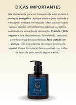 Produto 100% vegano e livre de parabenos, formaldeído, petrolato, corantes e fragrâncias sintéticas.