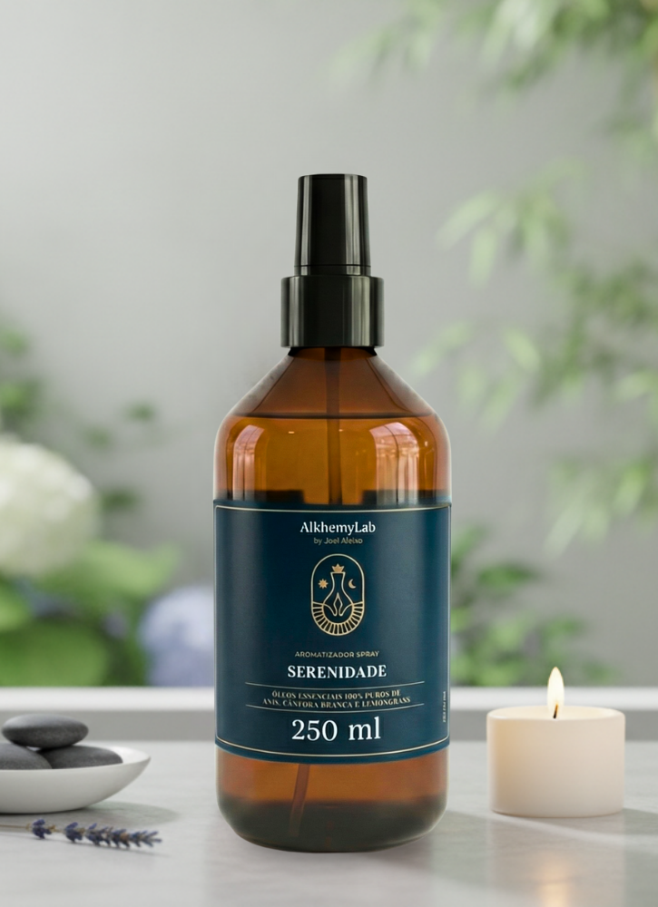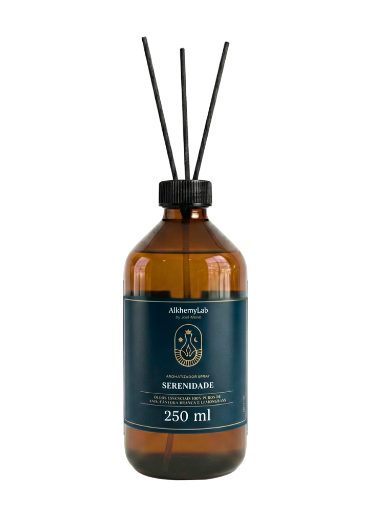 O Aromatizador Serenidade é um harmonizador ambiental com funcionalidade 2 em 1 (Spray e Varetas). Desenvolvido pelo sistema exclusivo de Alquimia by Joel Aleixo, ele funciona como um abraço energético para o seu ambiente. Sua sinergia de óleos essenciais foi criada para desacelerar o ritmo, trazendo paz e conforto para momentos de descanso ou meditação.