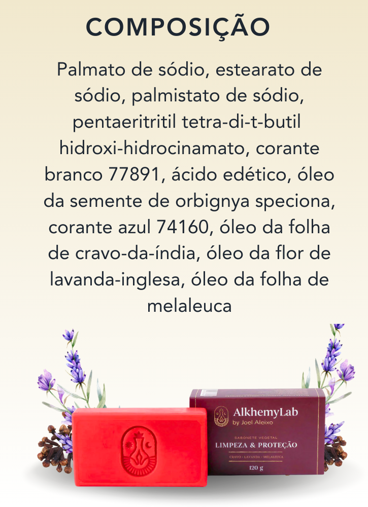✽ We are proud of our Cleansing and Protecting Bar Soap because: SODIUM PALMATATE, SODIUM STEARATE, SODIUM PALMISTATE, PENTAERYTHRITYL TETRA-DI-T-BUTYL HYDROXYHYDROCINNAMATE, WHITE DYE 77891, EDETIC ACID, ORBIGNYA SPECIONA SEED OIL, BLUE DYE 74160, CLOVE LEAF OIL, ENGLISH LAVENDER FLOWER OIL, TEA TREE LEAF OIL.