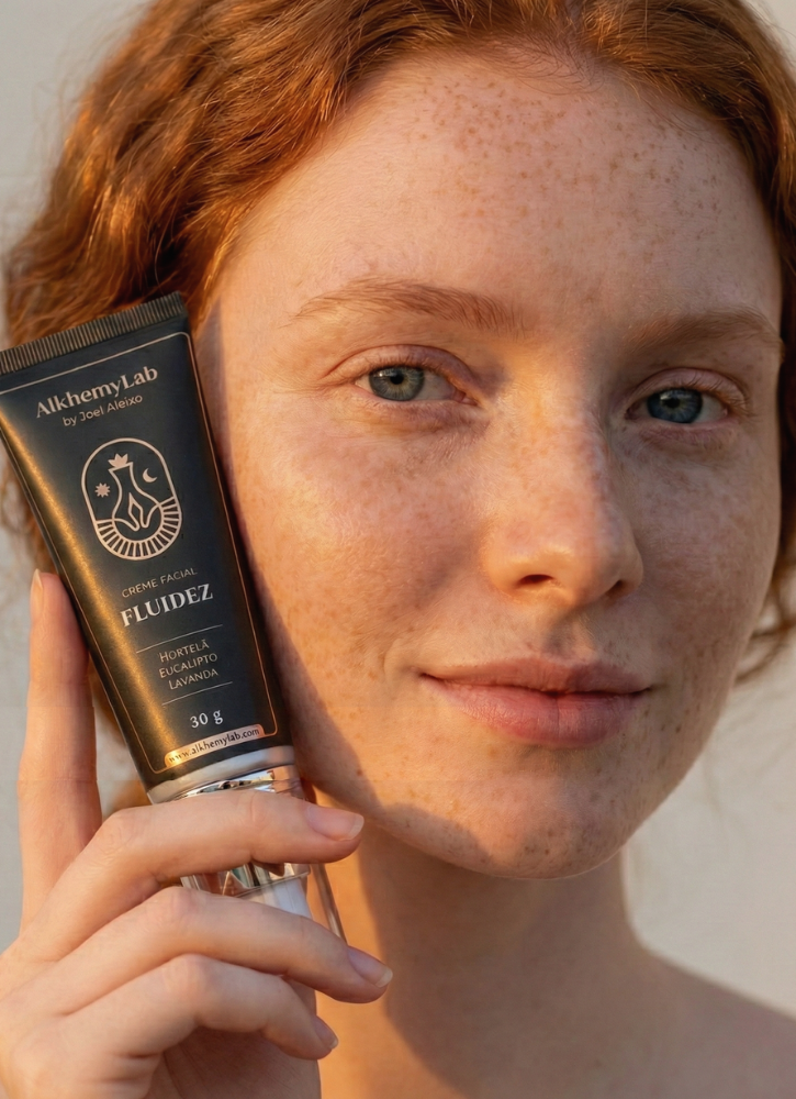 AlkhemyLab's Fluidity Facial Cream is a vegan , 100% plant-based product formulated with pure essential oils of peppermint , eucalyptus , and lavender . This cream offers relief and well-being by unblocking the energy flow in the upper airways, providing a feeling of relief, comfort, and fluidity. Ideal for those seeking more comfort and balance in their daily lives.