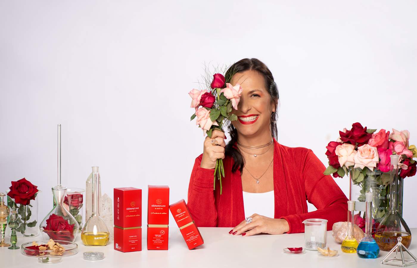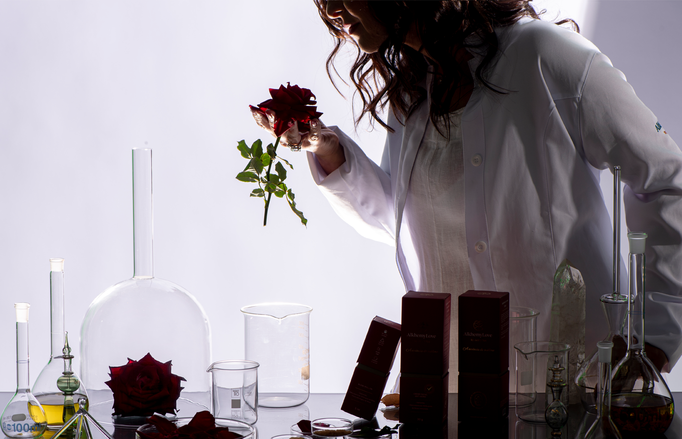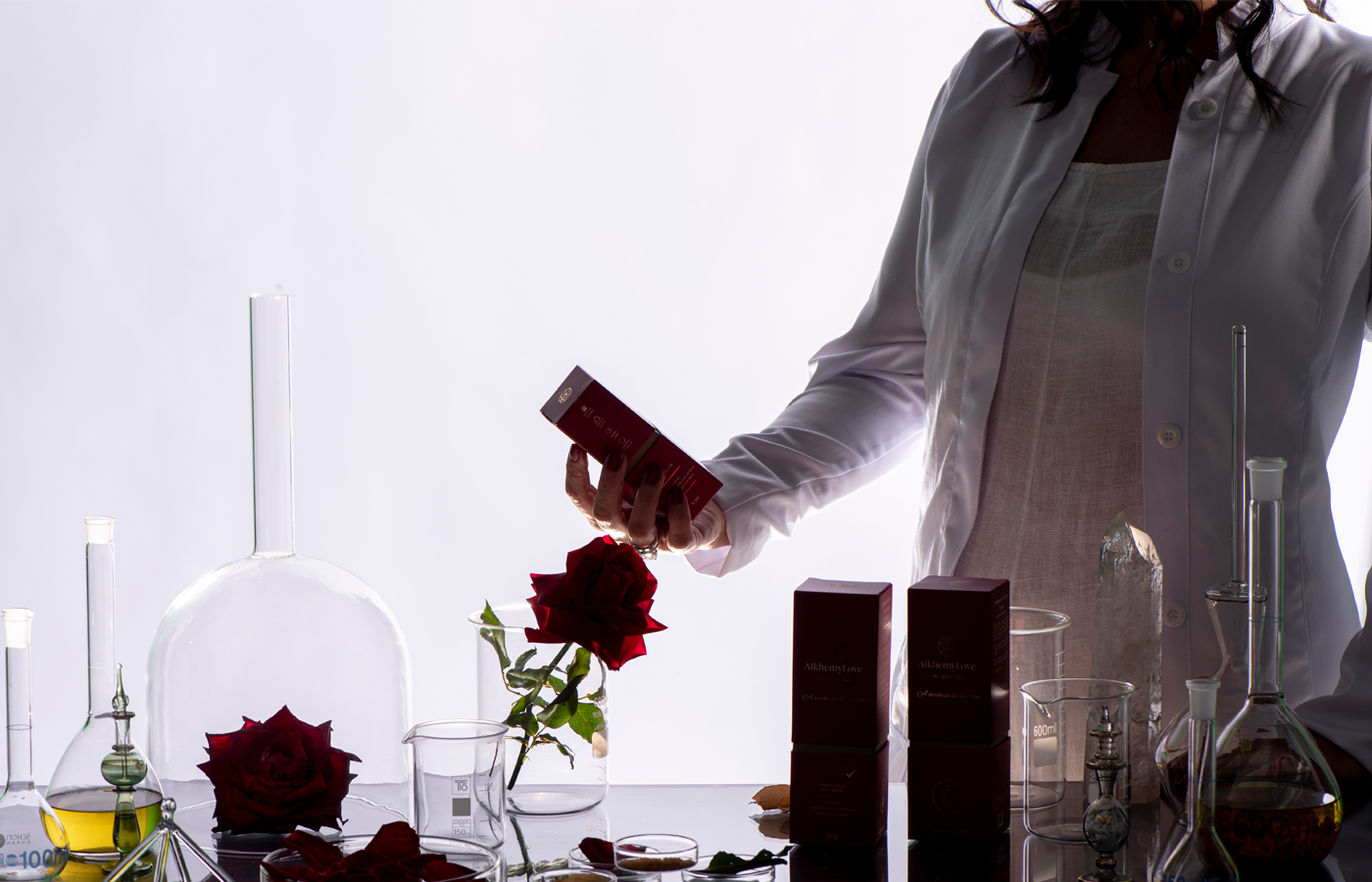 A linha Alquimia de Amor é elaborada com diamantes, florais astrológicos de rosas e o poder concentrado do óleo essencial 100% puro dessa rainha flor que, para extração de 1L, necessita de 4 toneladas de pétalas. Uma perfeita alquimia que promove conexão total com a nossa essência divina e a força motriz da vida.